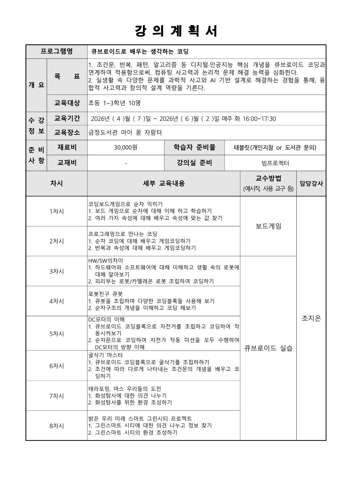 | 첨부파일 | 강의계획서(큐브로이드).jpg |