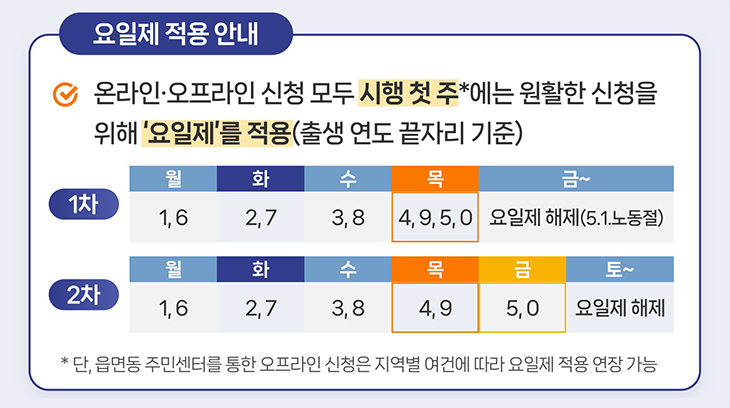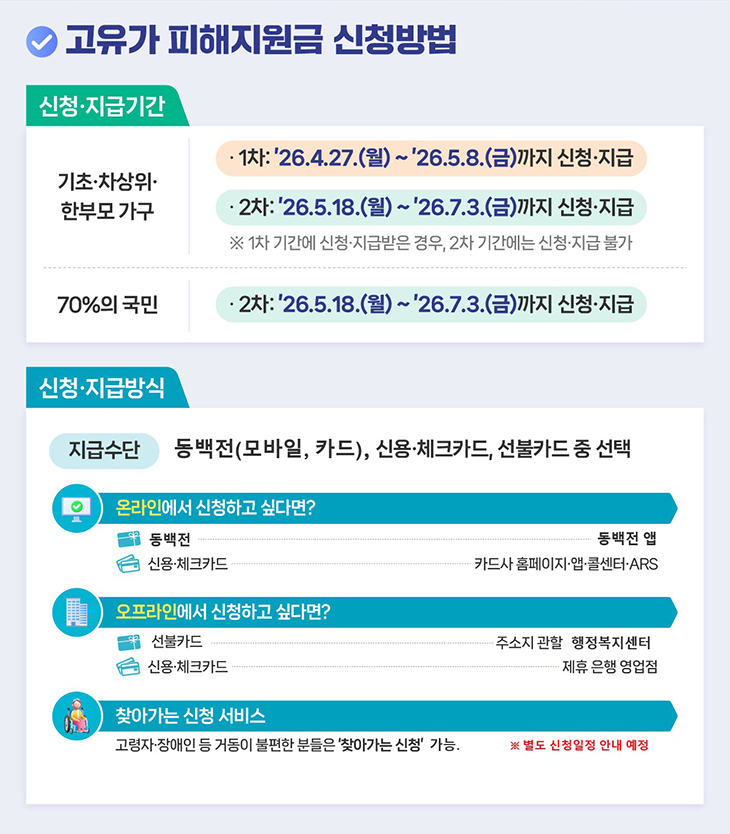 - 1차:'26.4.27.(월)~'26.5.8.(금)까지 신청·지급