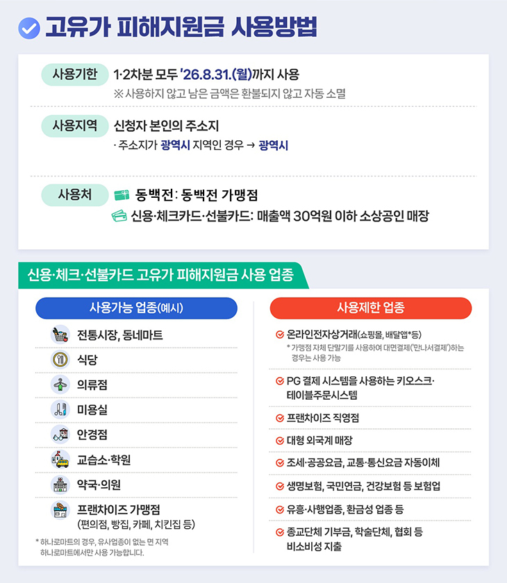 ※ 사용하지 않고 남은 금액은 환불되지 않고 자동 소멸 - 사용지역 : 신청자 본인의 주소지